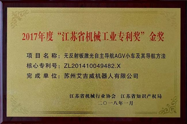 艾吉威憑借自主研發(fā)的“無反光板激光自主導(dǎo)航AGV小車及其導(dǎo)航方式”,一舉打破國外壟斷,成為國際上少數(shù)掌握這一技術(shù)的公司之一,也為激光導(dǎo)航技術(shù)豎起了風(fēng)向標(biāo),榮獲2017年度”江蘇省機(jī)械工業(yè)專利獎(jiǎng)“金獎(jiǎng)實(shí)至名歸。這是無反光板激光自主導(dǎo)航AGV繼獲得國家發(fā)明專利、美國發(fā)明專利、高新技術(shù)產(chǎn)品認(rèn)證、十大AGV創(chuàng)新產(chǎn)品獎(jiǎng)之后的又一重要認(rèn)可。
