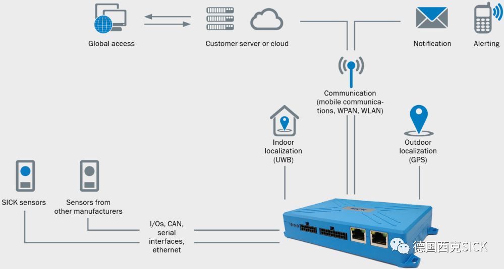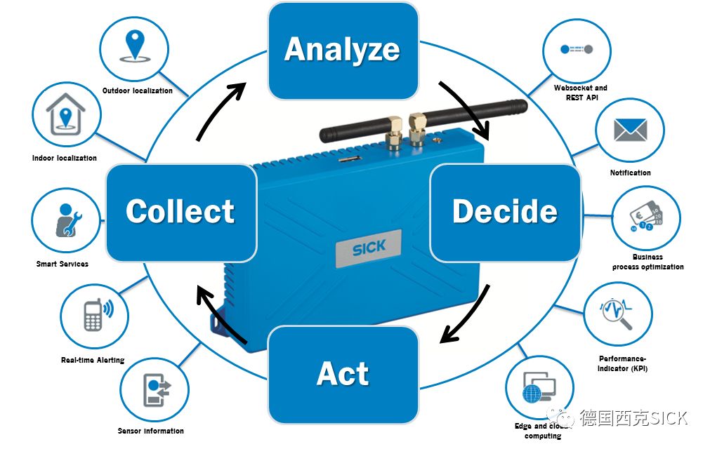 SICK不僅可提供傳感器為正在運(yùn)行的自動(dòng)化系統(tǒng)監(jiān)測(cè)實(shí)時(shí)數(shù)據(jù),而且可提供對(duì)智能數(shù)據(jù)的訪問(wèn),以用于檢測(cè)機(jī)器或車輛狀況、預(yù)測(cè)性維護(hù)以及流程優(yōu)化等。 TDC(遠(yuǎn)程信息數(shù)據(jù)收集器)網(wǎng)關(guān)系統(tǒng)允許通過(guò)移動(dòng)通信收集、存儲(chǔ)和傳輸來(lái)自傳感器的數(shù)據(jù)。TDC擁有所有標(biāo)準(zhǔn)接口,并提供帶有API接口的SaaS云平臺(tái)。 TDC遠(yuǎn)程數(shù)據(jù)收集器將數(shù)據(jù)發(fā)送到預(yù)定義的服務(wù)器,數(shù)據(jù)可以通過(guò)用戶界面顯示,并通過(guò)SIM卡實(shí)現(xiàn)M2M數(shù)據(jù)傳輸。此外,TDC擁有GPS、UWB和GSM等功能,易于安裝在所有物體上,并為機(jī)器和車輛操作員提供機(jī)器狀況的實(shí)時(shí)監(jiān)控,例如車輛定位、液位、壓力、功耗和其他對(duì)過(guò)程非常重要的性能參數(shù)。 從而,操作員可通過(guò)訪問(wèn)智能數(shù)據(jù)時(shí)刻密切關(guān)注設(shè)備或車輛,實(shí)現(xiàn)可預(yù)見(jiàn)性維護(hù)。 M2M通信使信息能夠在機(jī)器、車輛與控制中心之間實(shí)現(xiàn)自動(dòng)交互。