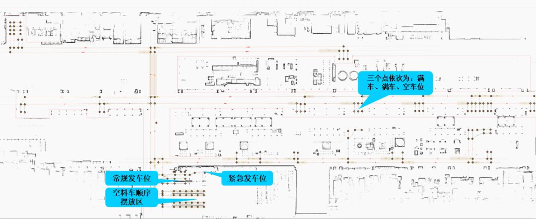 調(diào)度系統(tǒng)安排最優(yōu)移動(dòng)機(jī)器人來(lái)發(fā)車(chē)區(qū), 高效精準(zhǔn)地將滿(mǎn)料車(chē)送達(dá)工位