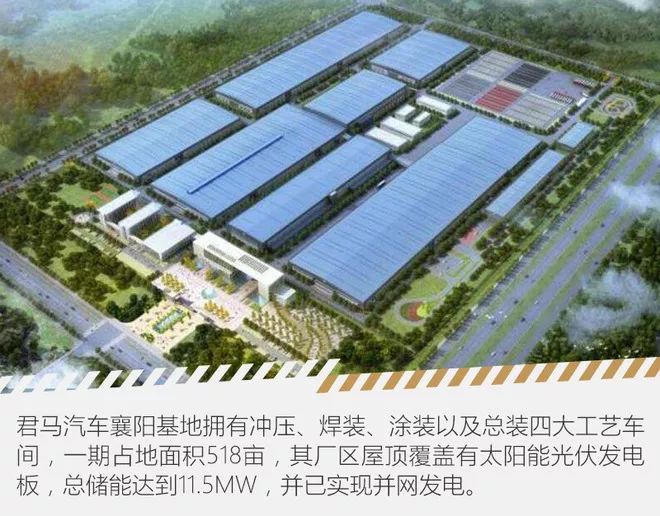 君馬汽車襄陽基地由沖壓、焊裝、涂裝以及總裝四大車間組成,這也是現代整車生產廠的“標準配置”。但是在基礎建設方面,君馬襄陽基地還配套了太陽能發(fā)電屋頂等新潮設備,突出了具有前瞻性的節(jié)能環(huán)保制造理念,這也是目前所有制造業(yè)的發(fā)展方向。