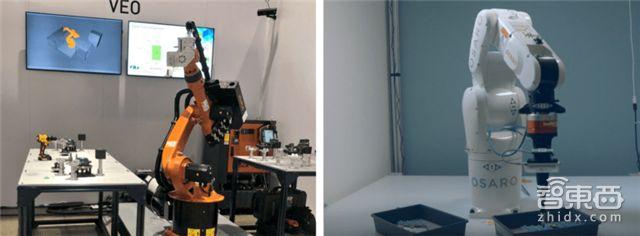 下圖是Veo Robotics(左)和Osaro(右)演示的基于視覺(jué)系統(tǒng)的機(jī)器人揀選和排序。Veo Robotics的創(chuàng)立者是Rethink Robotics的前雇員,公司旨在用“人類(lèi)級(jí)眼睛”改造笨重的機(jī)械臂。Osaso則由Peter Thiel、Elad Gil和Sean Parker等人創(chuàng)立,面向制藥和食品服務(wù)等行業(yè)開(kāi)發(fā)機(jī)器人配套的視覺(jué)軟件。