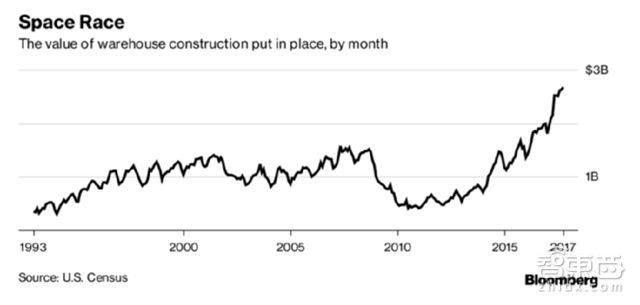 與此同時(shí),隨著電子商務(wù)的繁榮,倉(cāng)儲(chǔ)空間的需求也隨之激增。去年,平均倉(cāng)庫(kù)天花板高度比2001提高了21%,而新倉(cāng)庫(kù)建設(shè)的支出在2017年10月達(dá)到頂峰(僅在當(dāng)月就花費(fèi)了27億美元)。毫無(wú)疑問(wèn),倉(cāng)庫(kù)中協(xié)作機(jī)器人的需求正在增長(zhǎng)。