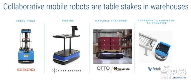 像Seegrid這樣的初創(chuàng)公司,專(zhuān)注于碼垛和叉車(chē);Clearpath的Otto部門(mén)專(zhuān)注于物料運(yùn)輸;Fetch和6 River Systems都是資金充足的玩家,在倉(cāng)庫(kù)環(huán)境中提供移動(dòng)采摘機(jī)器人。