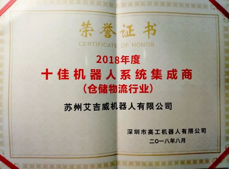艾吉威榮獲江蘇省高新技術(shù)企業(yè)、江蘇省機械工業(yè)專利金獎、江蘇省機械工業(yè)科技進步一等獎、蘇州科技領(lǐng)軍企業(yè)、蘇南國家自主創(chuàng)新示范區(qū)瞪羚企業(yè)等多項地級市獎項。