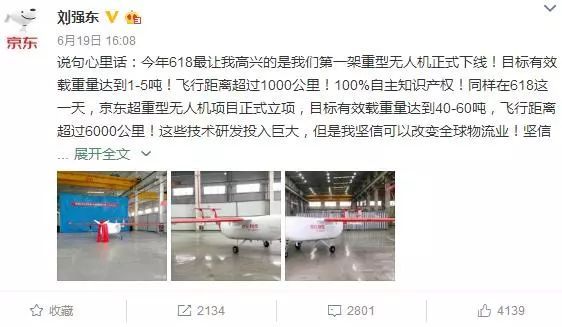 劉強(qiáng)東表示,今年618最讓他高興的是京東第一架重型無(wú)人機(jī)正式下線(xiàn)!這輛無(wú)人機(jī),目標(biāo)有效載重量達(dá)到1-5噸,飛行距離超過(guò)1000公里,100%自主知識(shí)產(chǎn)權(quán)。同時(shí)京東超重?zé)o人機(jī)項(xiàng)目立項(xiàng),目標(biāo)有效載重量達(dá)40-60噸,飛行距離超過(guò)6000公里。