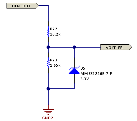 電阻分壓器用于將電壓從24V降低至3.3V,以將其饋送至MCU。下圖顯示了制動器電壓反饋電路。