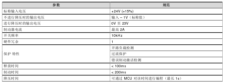 保持制動器額定電壓 24V、電流高達(dá) 2A,可通過獨立控制信號進(jìn)行控制