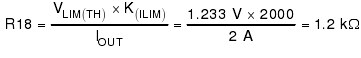 本設(shè)計旨在獲得2A的電流限值。用于設(shè)置該限值的電阻器值可通過下列公式計算得出: