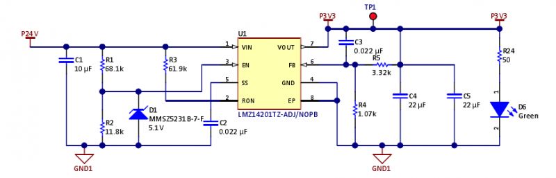 1)使用LMZ14201生成3.3V電壓