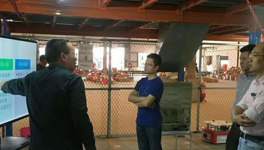 考察期間,該公司副總經(jīng)理陳敬毅向客人詳細(xì)介紹了深圳三維通機器人公司運營現(xiàn)狀及現(xiàn)場機器人分揀運行情況,并對智能分揀機器人系統(tǒng)的性能指標(biāo)及優(yōu)勢做了詳細(xì)的匯報。