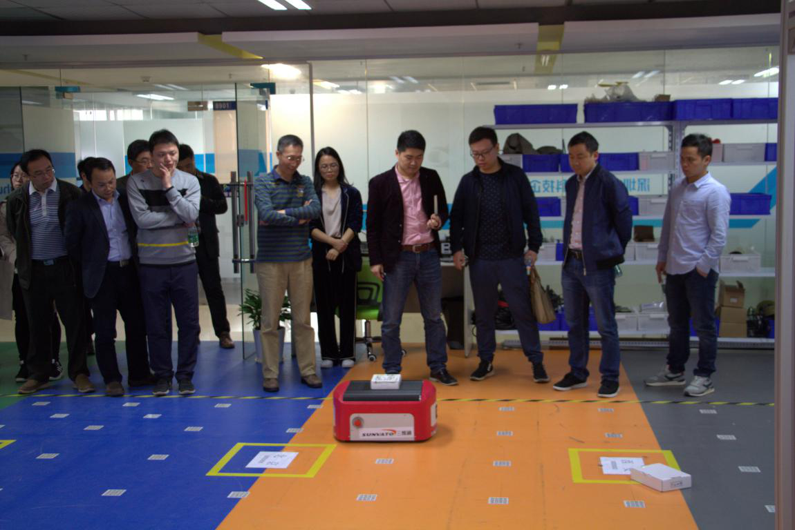 考察中,王總向考察團(tuán)成員詳細(xì)介紹了公司的發(fā)展歷程、企業(yè)文化、產(chǎn)品研發(fā)現(xiàn)狀及針對(duì)郵政系統(tǒng)開發(fā)的快遞包裹分揀機(jī)器人系統(tǒng)方案。在觀看三維通分揀機(jī)器人現(xiàn)場演示,并認(rèn)真聽取了王總的介紹后,雙方就智能分揀機(jī)器人系統(tǒng)技術(shù)、現(xiàn)場方案、現(xiàn)場需求等進(jìn)行了深入的交流。