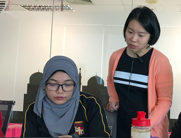 曹雨菡(右)培訓(xùn)LAZADA人工智能訓(xùn)練師