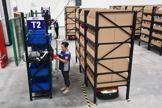 據(jù)了解,傳統(tǒng)的物流倉儲的揀貨模式叫做“人找貨”,對于分揀人員的專業(yè)能力和熟練度要求很高。而智能機(jī)器人的投入使用,將揀貨模式轉(zhuǎn)變?yōu)椤柏浾胰恕?,機(jī)器人根據(jù)程序指令實(shí)現(xiàn)搬運(yùn)貨架到指定地點(diǎn),工作人員僅需協(xié)助解決突發(fā)情況和日常維護(hù)即可。