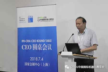 中國機械工業(yè)聯(lián)合會執(zhí)行副會長、中國機器人產(chǎn)業(yè)聯(lián)盟秘書長宋曉剛主持2018 IFR-CRIA CEO圓桌會議召開