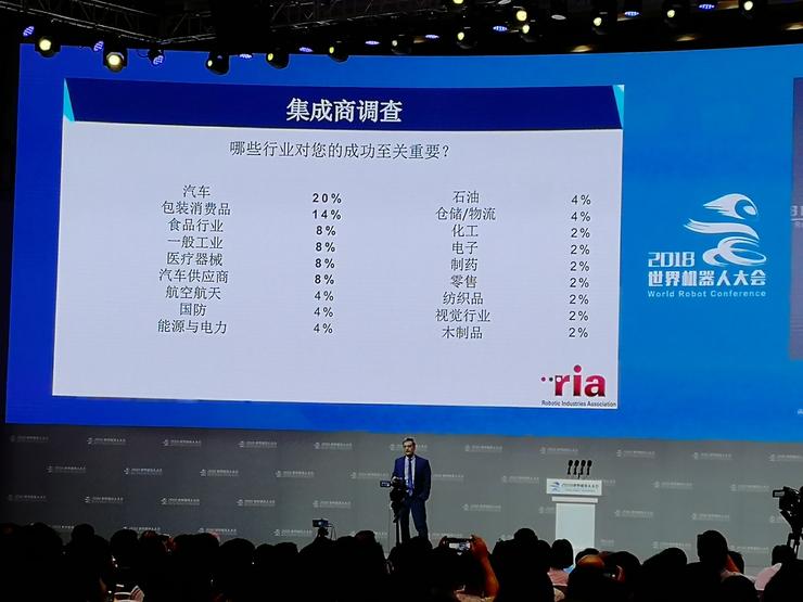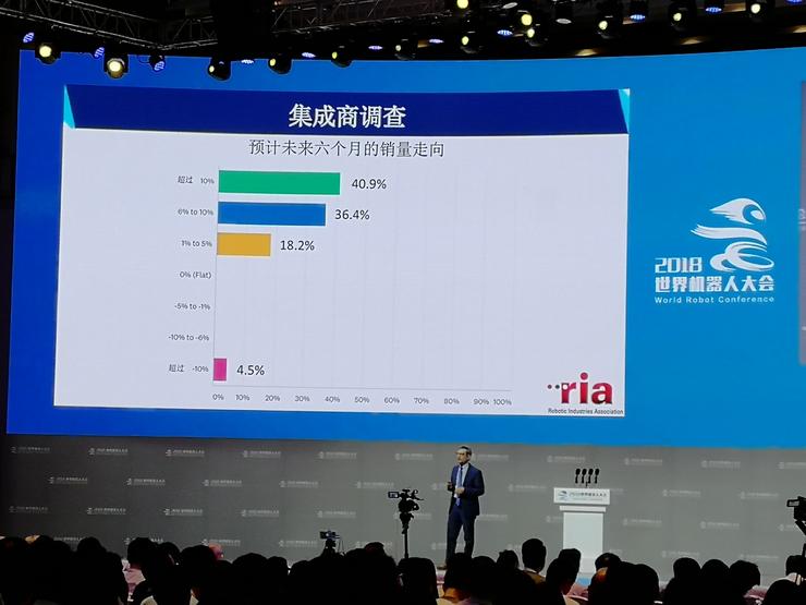 因?yàn)槲覀冊(cè)诿绹?guó)并沒(méi)有生產(chǎn)那么多的工業(yè)機(jī)器人,不然這些工業(yè)機(jī)器人是在歐洲和日本,現(xiàn)在有些是在中國(guó)生產(chǎn)的。美國(guó)比較擅長(zhǎng)的是集成,我們有很多的系統(tǒng)集成商,總共有172名集成商會(huì)員,也會(huì)定期和他們溝通聊一聊未來(lái)。今年上半年我們也和他們溝通過(guò),現(xiàn)在相比過(guò)去還是要更樂(lè)觀一些。這里指的不僅僅是機(jī)器人學(xué)會(huì),也包括計(jì)算視覺(jué)學(xué)會(huì)和相關(guān)行業(yè),所以整個(gè)集成商會(huì)員代表了很多行業(yè)。