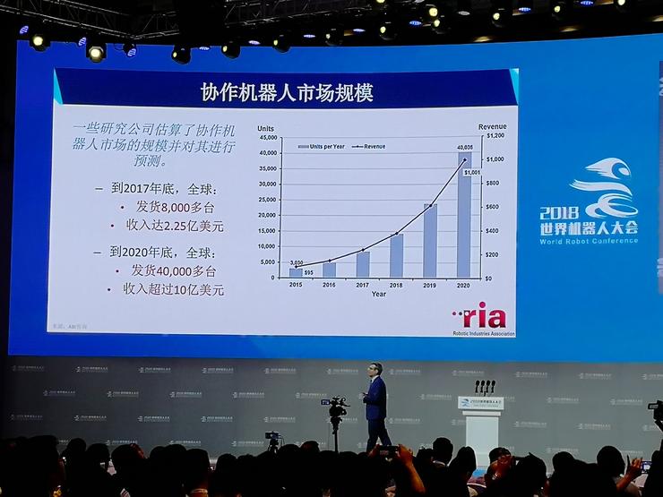 但是協(xié)作機(jī)器人的具體數(shù)字并沒(méi)有真正反映這個(gè)市場(chǎng)的情況,因?yàn)橛行?a href="http://m.wnmc.org.cn/company/search.php" title="公司" target="_blank">公司還沒(méi)有把銷(xiāo)售的數(shù)字匯報(bào)出來(lái),發(fā)布的數(shù)字已經(jīng)有一段時(shí)間了,2017年底是8000多臺(tái),2020年底可能超過(guò)40000臺(tái)。當(dāng)然,我也和一些公司聊過(guò),認(rèn)為增長(zhǎng)速度可能比這個(gè)更高,但這些都顯示機(jī)器人這個(gè)行業(yè)發(fā)展是非??斓模粌H在美國(guó),全世界都存在這樣的趨勢(shì)。