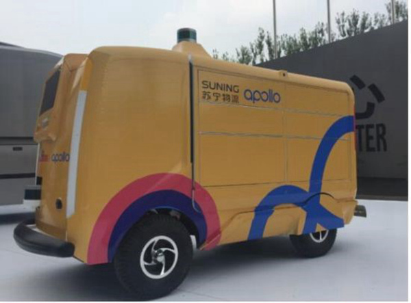 (蘇寧物流聯(lián)手百度Apollo聯(lián)合推出的無(wú)人配送小車(chē))