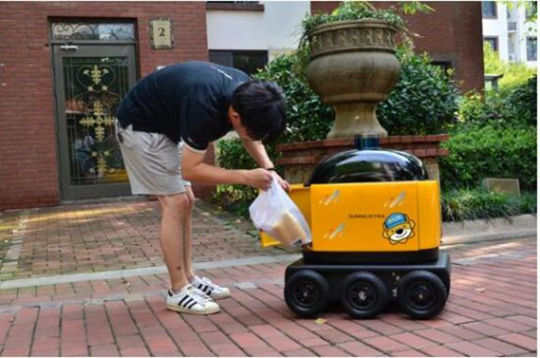 (南京市民體驗(yàn)“臥龍一號(hào)”無(wú)人送貨)