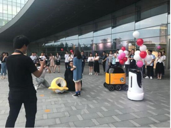 就在剛剛過(guò)去的8月20日,一場(chǎng)醞釀了許久的求婚儀式迎來(lái)了最幸福的時(shí)刻。蘇寧總部的一位程序員,用最浪漫的方式向心里的姑娘示愛(ài),除了親寫(xiě)的表白代碼、助攻團(tuán)的快閃、蘇寧全產(chǎn)業(yè)的“豪禮紅包”、小Biu智能音箱的助力以外,男主人公還將求婚戒指放進(jìn)“臥龍一號(hào)”、將玫瑰放進(jìn)無(wú)人送貨機(jī)器人,代替他送出心意。這別出心裁的“高科技驚喜”不僅打動(dòng)了女主人公,還將幸福傳遞給在場(chǎng)所有人。