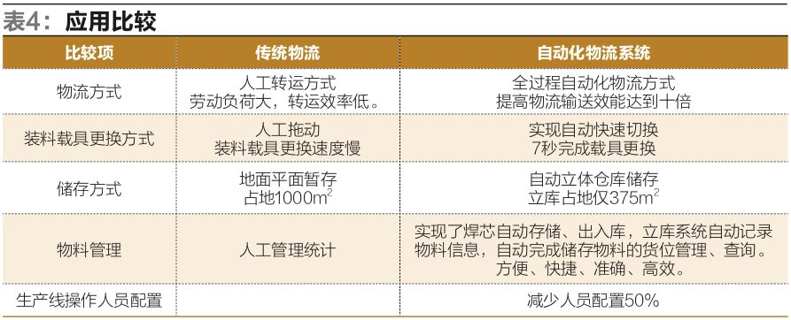 該項目應(yīng)用自動化物流系統(tǒng)前后比較情況見表4。