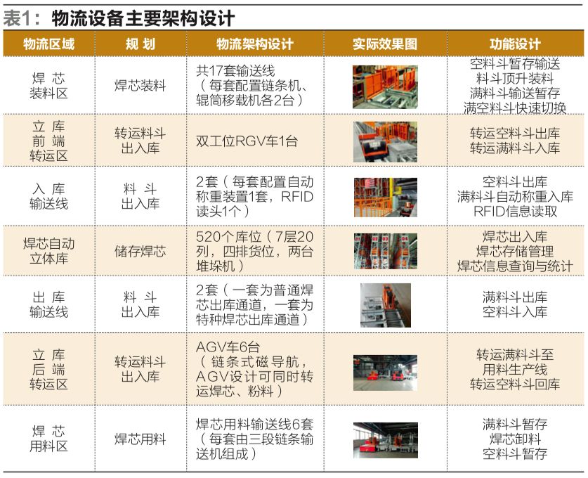焊接材料的生產(chǎn)物料具有多品種、大批量等特點,原材料主要有盤條、粉料等,半成品有焊芯、濕粉等物料,物料特點是體積大、質(zhì)量重、轉(zhuǎn)運頻次高、轉(zhuǎn)運量大,因此要滿足大西洋焊接產(chǎn)業(yè)園生產(chǎn)需求,必須設(shè)計一套適用于實際生產(chǎn)的高效能自動物流系統(tǒng)。本項目是焊條半成品(焊芯)的自動物流輸送系統(tǒng)的集成和應(yīng)用。