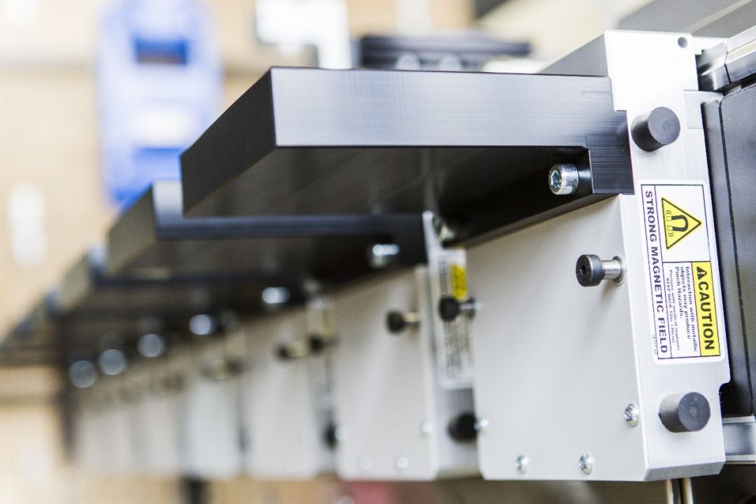 SuperTrak上的每個托盤配備兩到三個永磁體,導軌上的線圈與托盤上的永磁體可產生吸力和推力,使托盤在導軌上移動。永磁體數量不同,產生的吸力和推力也不同,可滿足不同的工業(yè)制造需求。由于托盤通過吸力而非機械裝置固定在導軌上,安裝或拆除托盤只需數秒,并且不費人力,易于產品的快速換型和系統維護,同時正常生產時間也大幅提升,在很多場景下生產效率比傳統輸送高出5-10倍。