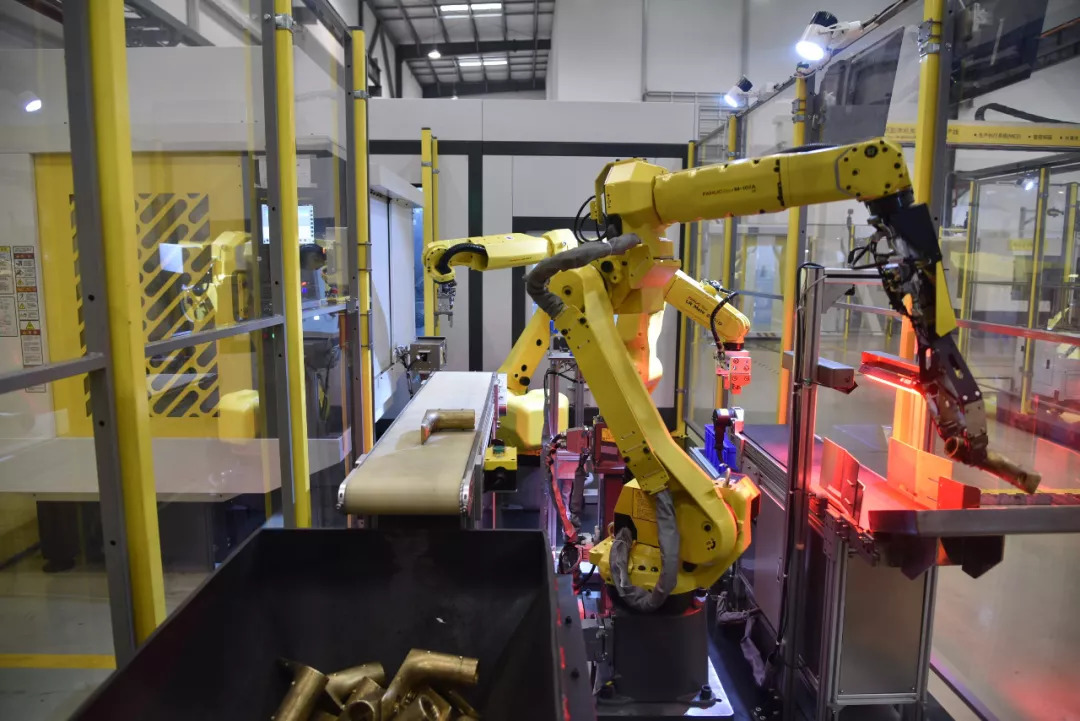 該線主要展示的是針對衛(wèi)浴、五金產(chǎn)品,從鑄件毛坯、機加工到打磨的全自動化解決方案,通過FANUC機器人、智能機器與智能視覺相配合,將人工從機加、打磨的惡劣環(huán)境中解脫出來,穩(wěn)定產(chǎn)品質(zhì)量并提升企業(yè)競爭力。