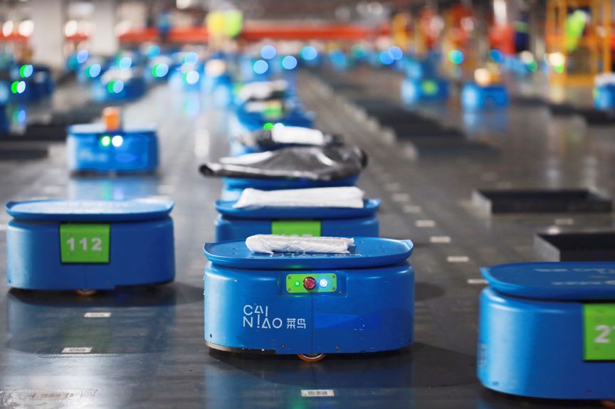 (2)菜鳥圓通聯(lián)手啟用超級(jí)機(jī)器人分撥中心雙11一天可分50萬單