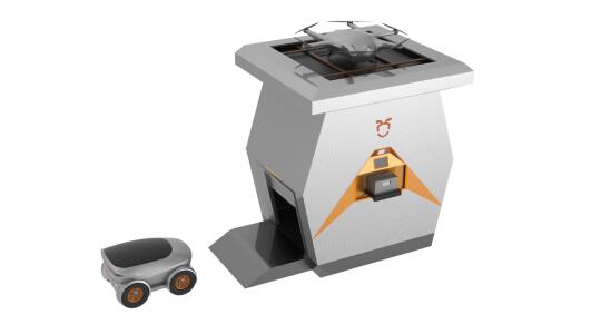 ?無人站將外賣/貨物從無人車取出,自動分揀后裝載到無人機