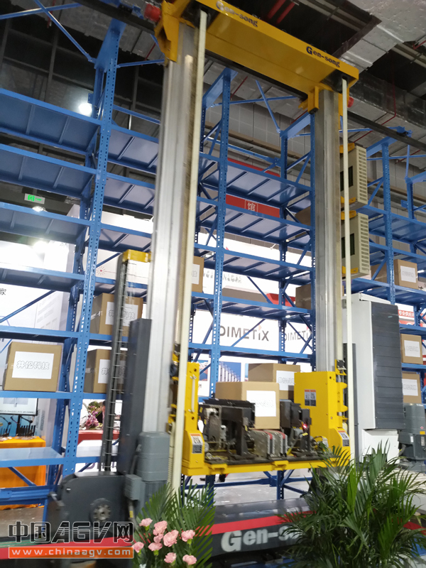 此次展示的雙立柱堆垛機(jī),最高可達(dá)30米,載重500KG,速度達(dá)240-260米/分,核心零部件多為井松科技自主研發(fā),其中貨叉便是井松科技的技術(shù)積累,自主研發(fā)生產(chǎn)。
