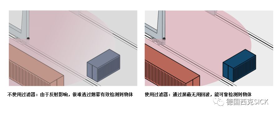煙霧過濾器:借助煙霧過濾器,MRS1000可消除無用的近距離回波,這樣能大幅降低在霧中近距離內(nèi)出現(xiàn)誤解發(fā)的概率。
