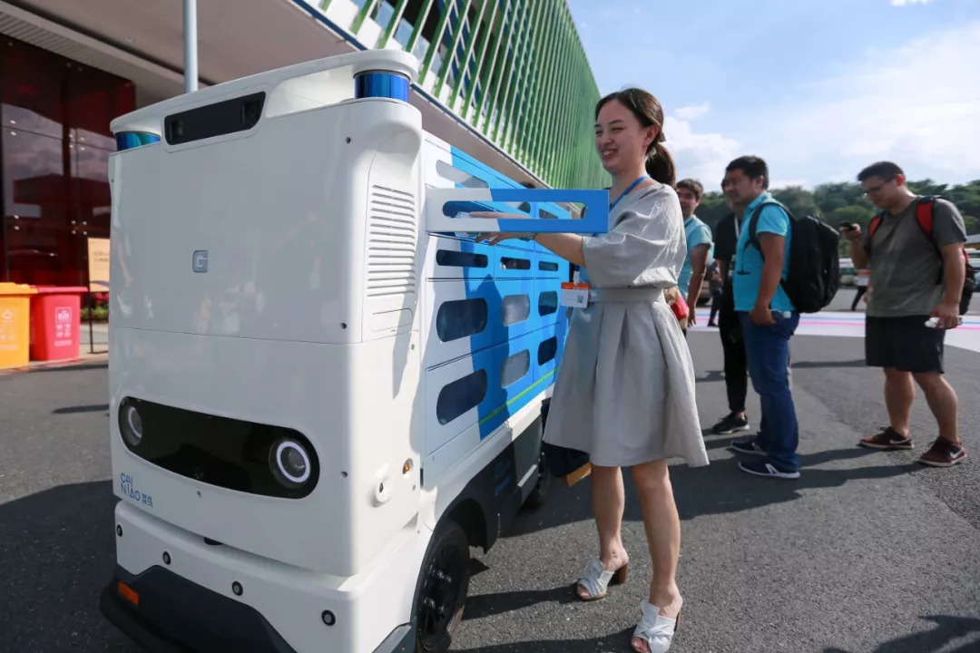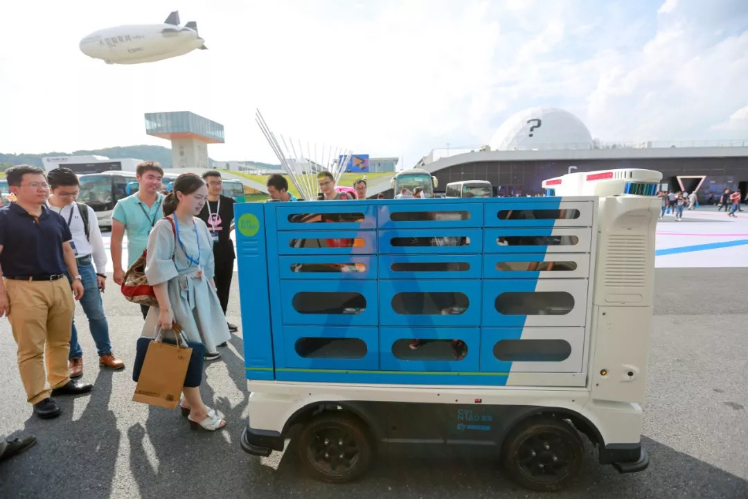 此次公開發(fā)布的新零售物流無人車,是菜鳥的第四代無人車。這一代無人車也是順應(yīng)新零售大潮,無人車加新零售,迸發(fā)出了新玩法。