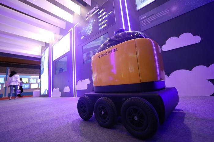 (江蘇互聯(lián)網(wǎng)大會上蘇寧展示的無人小車“臥龍一號”)