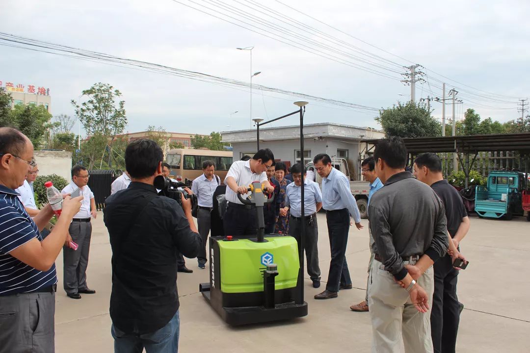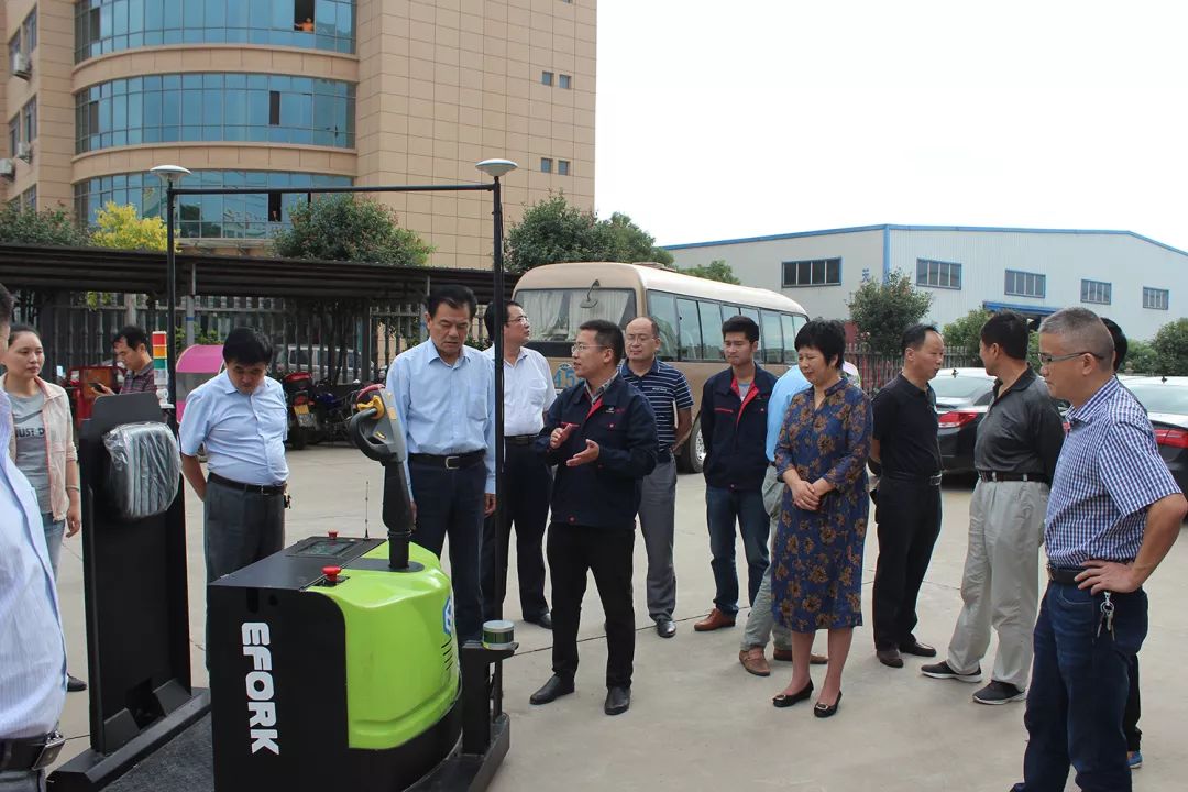 參觀過程中,調(diào)研組一行在總經(jīng)理項(xiàng)衛(wèi)鋒的陪同下還參觀了電動叉車裝配車間,實(shí)地了解公司叉車生產(chǎn)裝配工藝流程、產(chǎn)品結(jié)構(gòu)、現(xiàn)場管理等情況。在裝配叉車成品前,總經(jīng)理項(xiàng)衛(wèi)鋒向調(diào)研組一行介紹電動叉車的市場情況、零部件生產(chǎn)供應(yīng)情況以及相關(guān)技術(shù)情況。