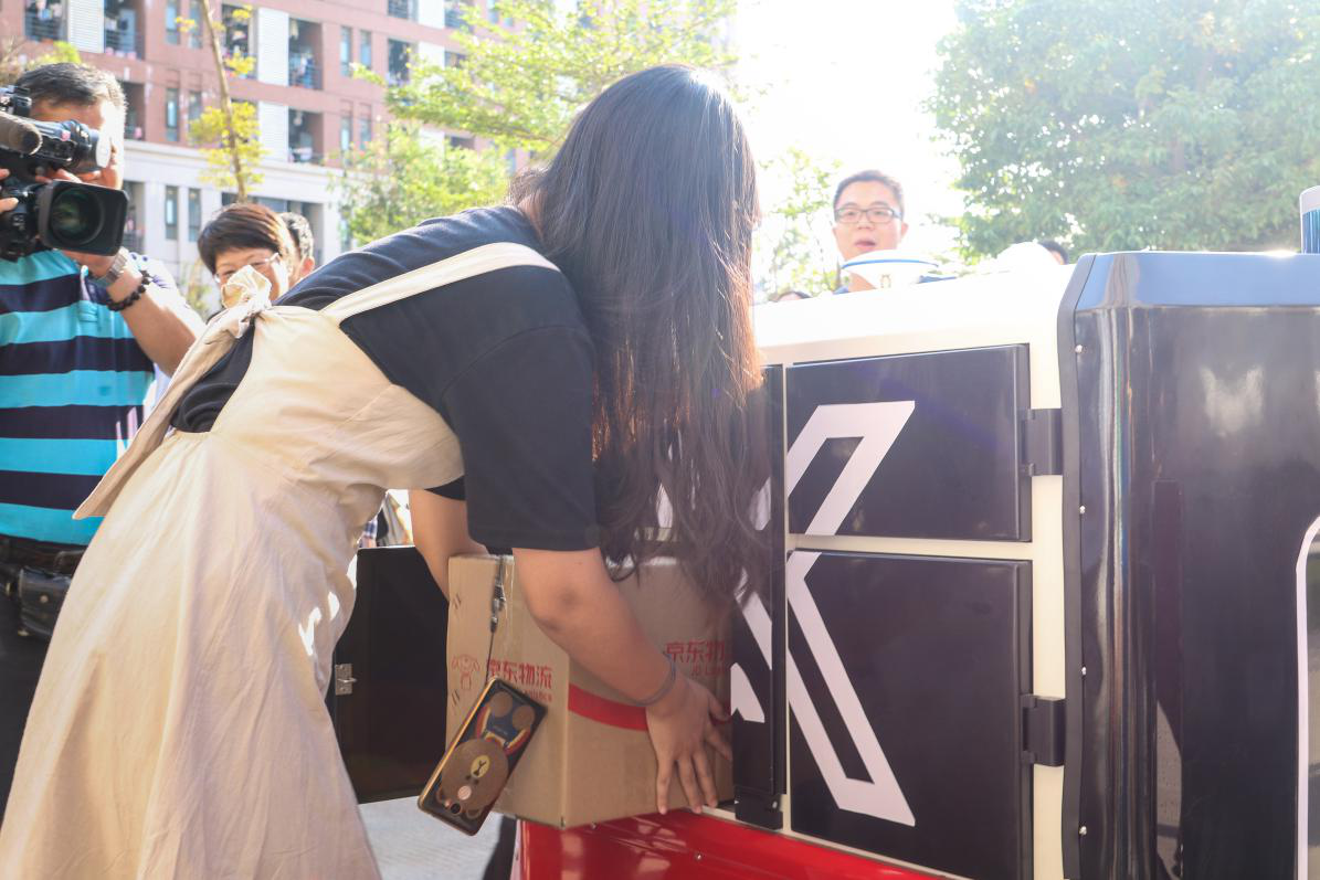 京東物流配送機器人將首單包裹送至宿舍樓下,陳彥潤同學輸入取貨碼,打開車廂取出包裹?!盁o人配送配送服務太方便了!”,陳同學興奮地說,“機器人出發(fā)和到達時都發(fā)了信息給我,我剛下樓就發(fā)現它在等我了。再也不用繞路去快遞點了!”體驗過無人配送服務后,陳同學認為整個過程十分便捷,希望京東能夠引領校園快遞的智慧服務,為校園生活帶來更多便利。