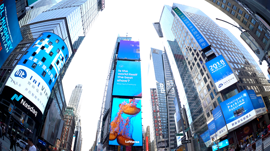 紐約時(shí)代廣場(chǎng)(Times Square)是財(cái)富與文化雙雄交匯的“世界十字路口”。在這里,年均客流量數(shù)千萬(wàn)人次、人員流量上億人次。這里是全球最受矚目的商業(yè)核心地段,全球高端品牌長(zhǎng)期在這里傳播品牌形象。