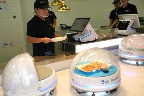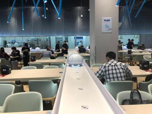 在配送時,服務區(qū)的工作人員將新出爐的菜肴放進半圓形帶翻蓋的機器人托盤,然后機器人會自動設計路線,選擇合適的軌道將菜肴配送至消費者面前。消費者只要自己將菜肴從機器人托盤上端至餐桌即可。