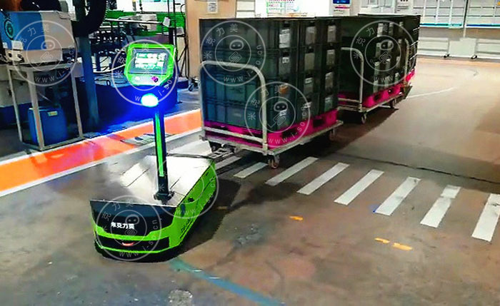 AGV小車是通過激光或磁條來實現(xiàn)導(dǎo)向的無人運輸工具,可以把各工位所需零件從配送中心自動運送到各工位,通常是將零件放到料架上,料架搭載在AGV小車上,來實現(xiàn)無人運輸。這樣可以大大減少場內(nèi)人員的流動性,提高整潔性及空間利用性。米克力美AGV項目工程師表示:在設(shè)置AGV小車運用的時候我們要考慮實際的廠區(qū)結(jié)構(gòu)及產(chǎn)品配置,而并不是為了使用AGV小車而使用。正確合理的AGV運行路線不僅能提高生產(chǎn)效率和工作效率,還可以減少AGV的使用數(shù)量,從而降低設(shè)備的投入成本,減少物流費用。