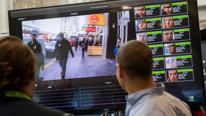 圖:華盛頓特區(qū)展出的面部識別系統(tǒng),這樣的系統(tǒng)可以從人群中挑選嫌疑人,但也需要人類來清除誤報