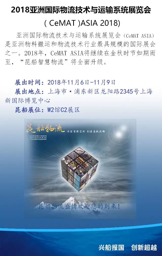 昆船物流誠邀您參加2018亞洲國際物流技術(shù)與運輸系統(tǒng)展覽會(CeMATASIA 2018)
