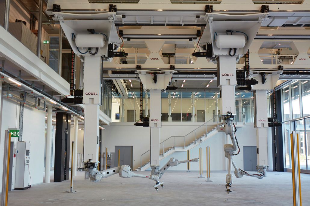 Robotic 機器人制造實驗室 RFL 是全球獨一無二的機器人實驗室,ABB 公司研發(fā)生產(chǎn)的四臺機器人懸掛在 Güdel公司研發(fā)生產(chǎn)的龍門架上。該設(shè)備是在建筑和數(shù)字化工廠系的教授推動下實施的,也是 H?nggerber 校區(qū)建筑技術(shù)實驗室研究所 ITA 新建筑研究項目的一個組成部分。整個系統(tǒng)共有 36 根軸,在這些軸的幫助下,??烤瓤梢赃_到半毫米。這一裝置是唯一一套有能力按照 1:1的比例在實驗室中制作兩層物體的裝備,不同機器人的不同應(yīng)用機器人也是唯一允許進行大規(guī)模范圍的建筑結(jié)構(gòu)設(shè)計和建筑施工實驗的大型實驗設(shè)備,它一方面可以模擬施工現(xiàn)場的機器人制造過程以及人機協(xié)作過程 ;另一方面則可以研究自動化的預(yù)制件生產(chǎn)工藝。通常情況下,RFL 實驗室能夠在很大范圍內(nèi)完成不同尺寸規(guī)模的數(shù)字化建造過程和建筑材料生產(chǎn)過程的試驗研究,這樣就可以大大擴展機器人在建筑設(shè)計和建筑施工領(lǐng)域中的研究范圍,同時也可以把這些領(lǐng)域中的研究成果移植到其他學(xué)科領(lǐng)域中,從而開辟新的研究領(lǐng)域。