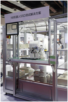 最近發(fā)布的“無所不至”新型折疊手臂六軸機器人N6(以下簡稱:N6機器人)首先映入眼球?,F(xiàn)場展示的N6機器人 SSD測試解決方案,由N6機器人搭載愛普生中空壓力傳感器,完美演繹了N6機器人的球形手臂優(yōu)勢,在高速靈巧的活動范圍下,負(fù)載也進一步提升,可應(yīng)用于更多元的產(chǎn)業(yè)中,同時提高生產(chǎn)力,也可處理多個測試站。N6作為一款擁有較高性價比和易用性的機器人,可廣泛應(yīng)用于3C電子、汽車電子、醫(yī)療等行業(yè)中,因其采用的折疊手臂式結(jié)構(gòu)和內(nèi)部走線的設(shè)計,N6機器人可自然進入高層設(shè)備、機器、架子等狹窄空間,方便架設(shè)與示教,輕松滿足制作商對提高制作精度的需求,保證在提高生產(chǎn)率的前提下有效節(jié)約安裝空間。