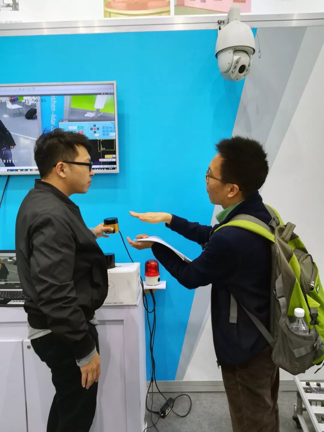 現(xiàn)場(chǎng),鐳神智能還演示了基于激光雷達(dá)的安防聯(lián)動(dòng)解決方案——以鐳神智能自主研發(fā)的激光雷達(dá)為核心,與攝像頭、報(bào)警器等協(xié)同聯(lián)動(dòng),實(shí)時(shí)監(jiān)測(cè)展位預(yù)設(shè)區(qū)域內(nèi)的情況,有人進(jìn)入監(jiān)測(cè)區(qū)域時(shí)即響應(yīng)報(bào)警,同時(shí),通過領(lǐng)先的算法將雷達(dá)探測(cè)到的入侵者的位移信息與攝像頭進(jìn)行數(shù)據(jù)融合,使攝像頭猶如裝上了“大腦”,可即時(shí)知悉入侵者的確切位置并進(jìn)行追蹤,實(shí)時(shí)錄下入侵者的圖像,以便更進(jìn)一步掌握區(qū)域?qū)崨r。鐳神智能激光雷達(dá)對(duì)環(huán)境的靈敏感知和對(duì)入侵人物的精準(zhǔn)掌握,勢(shì)必大大提升周界的安全防護(hù)等級(jí),獲得了現(xiàn)場(chǎng)眾多觀眾的嘖嘖稱贊。