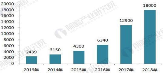 2013-2018年中國(guó)AGV機(jī)器人銷(xiāo)量