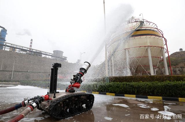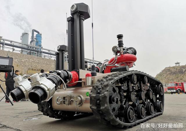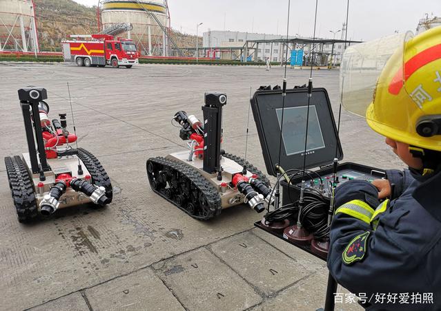 防爆消防滅火偵查機器人進行實戰(zhàn)演習,它上前戰(zhàn)斗,消防員在它不遠處遙控指揮就可以開展消防救援了。
