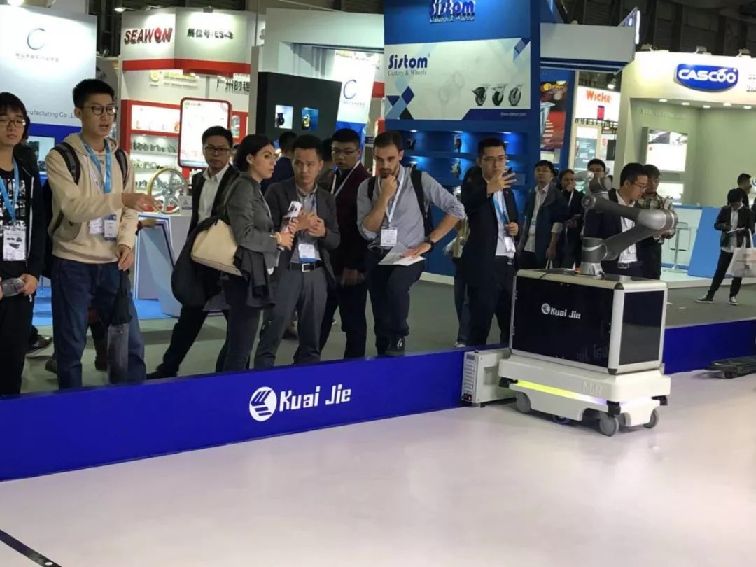 此次參展CeMAT Asia,快捷機器人還重點展示了背負機械手agv和倉儲物流機器人。