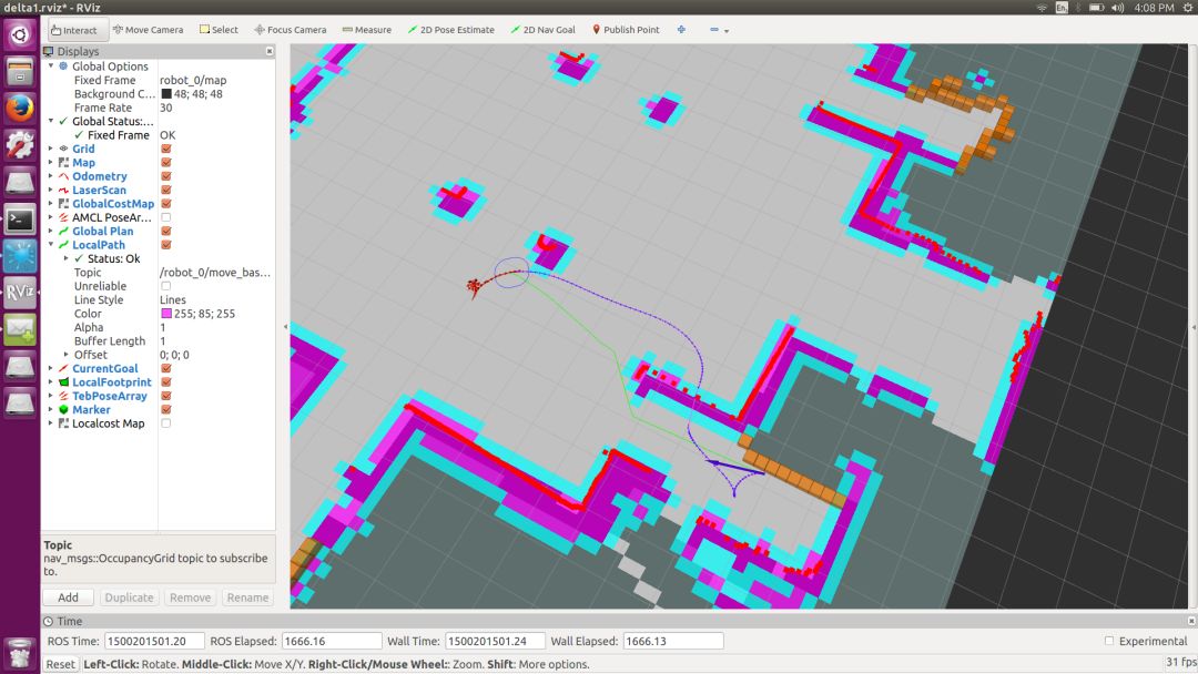AGV通過(guò)環(huán)境感知確定前進(jìn)方向中的可達(dá)區(qū)域和不可達(dá)區(qū)域,確定在環(huán)境中的相對(duì)位置,以及對(duì)動(dòng)態(tài)障礙物運(yùn)動(dòng)進(jìn)行預(yù)判,從而為局部路徑規(guī)劃提供依據(jù)。