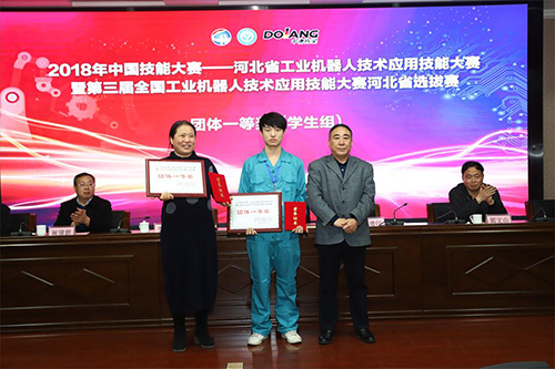 在歡快的樂曲聲中,與會領(lǐng)導(dǎo)為獲得各類獎項的參賽隊和參賽選手頒獎,其中,共有5人獲得學(xué)生組個人一等獎、6人獲得職工組個人一等獎,2個代表隊獲得學(xué)生組團體一等獎、2個代表隊獲得職工組團體一等獎。河北化工醫(yī)藥職業(yè)技術(shù)學(xué)院和山東棟梁科技設(shè)備有限公司獲得“特別貢獻獎”。通過大賽選拔出來的6名選手將組成我省職工隊和學(xué)生隊,代表我省參加全國大賽。