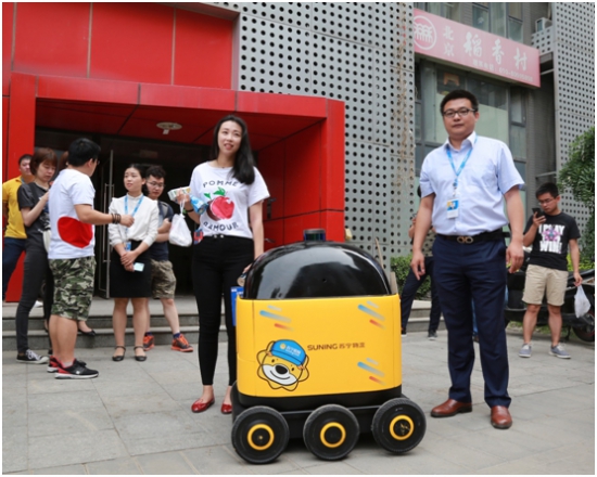 (圖:蘇寧AVG機(jī)器人在送貨)