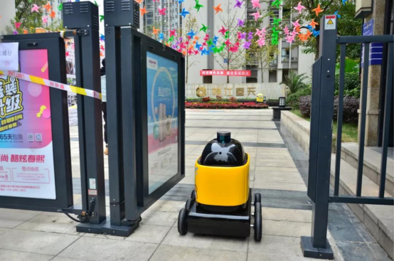 (圖:“臥龍一號(hào)”無人車進(jìn)小區(qū))